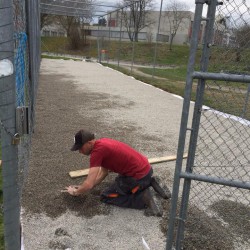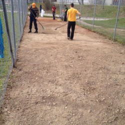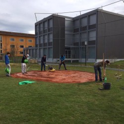 Auf dem Plan standen abziehen und frisch kiesen des Battingcages, Neubau des Mounds plus jäten und frischen Sand auftragen an den Bases.